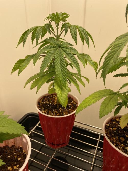 LAShugars I think I overwatered . I’m trying to let the cups dry out but in the process they are starting to look hungry. They are also lanky. I lowered the light for them that should help. Going to hit them with a very low dose of nutes soon as they a dry out a bit more.