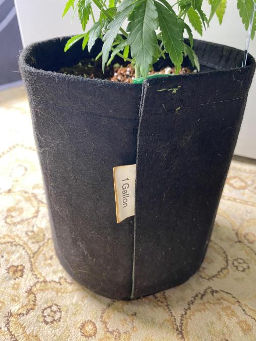 LAShugars Transplanted into 1 gallon transplant bag. She was much more root bound than I expected.Her lower leaves are for sure telling me something. Going to baby her for the next couple days and I’m she’ll be fine