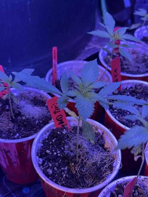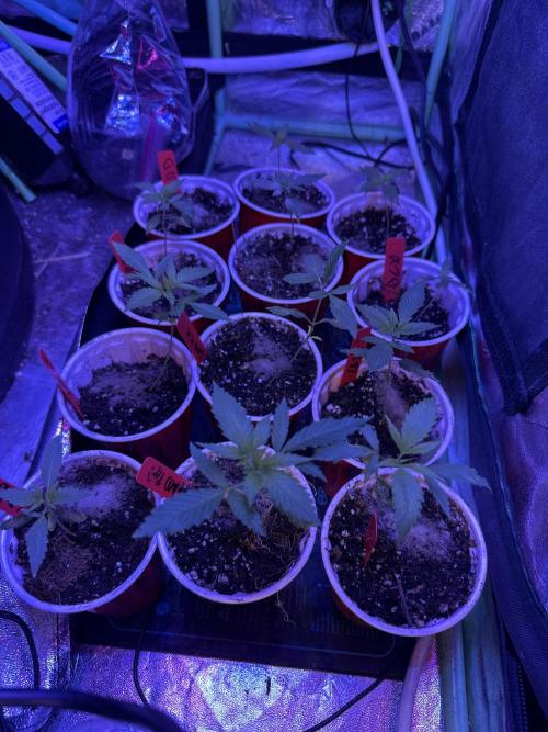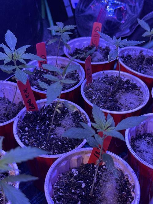 Halfpound Stoked to get after it. I just transplanted and rooted into solos. Veg week 1 starts when? 3 nodes? The Blueberry Cookies X is my own bx cross of “Blue Cookies by Ground Up Genes”. GMO TITI is my own cross of “GMO8 by Atlas Seeds” and Colombia Bag Seed Pollen I collected.