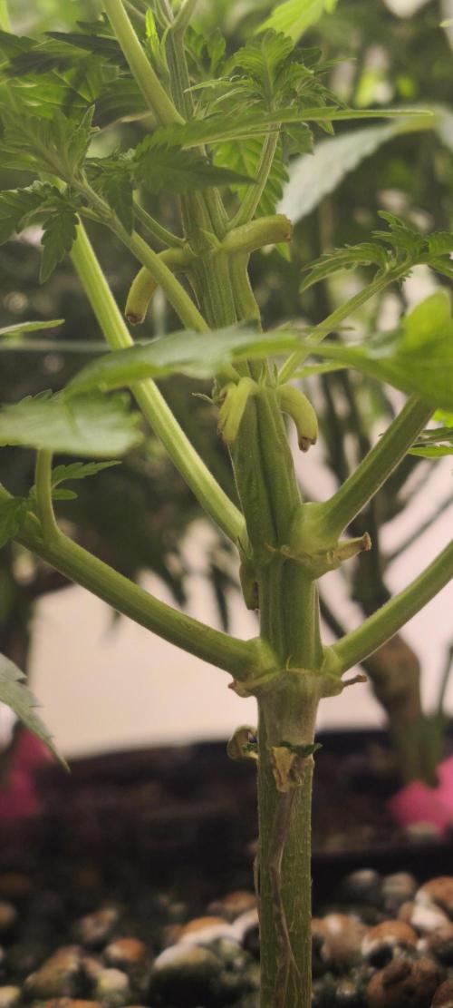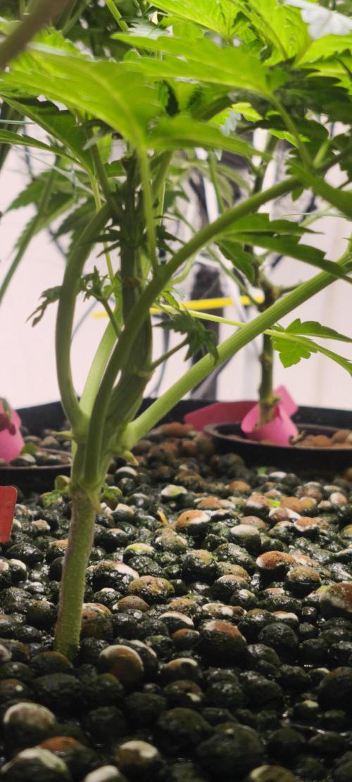 - **Croissance générale** : Les plants ont étiré modérément, avec des entre-nœuds de 2-3 cm. La couleur des feuilles reste saine (vert foncé), sans signes de carences ou de surchauffe. Le LST a bien aplati la canopée, favorisant une exposition uniforme à la lumière.