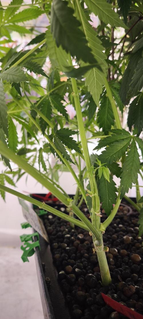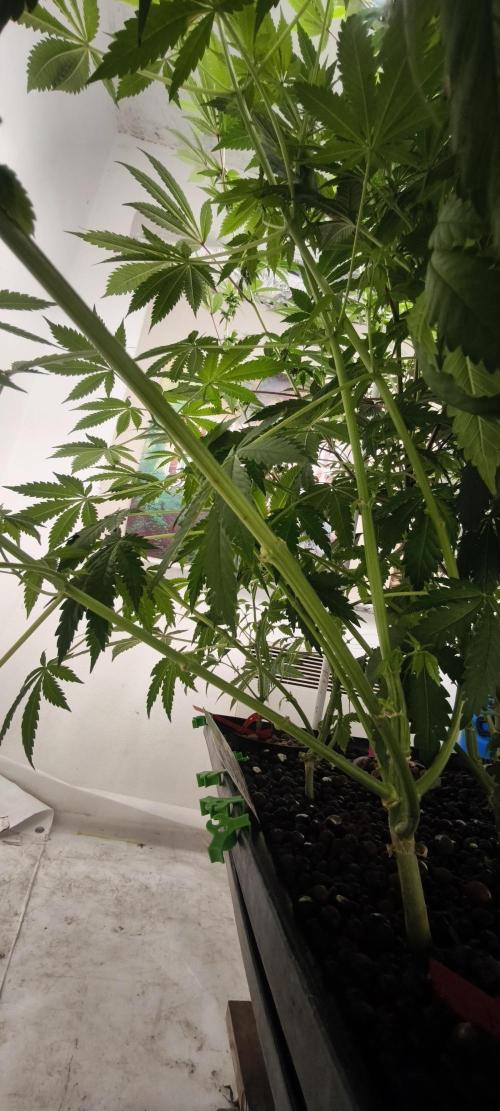 - **Croissance générale** : Les plants ont étiré modérément, avec des entre-nœuds de 2-3 cm. La couleur des feuilles reste saine (vert foncé), sans signes de carences ou de surchauffe. Le LST a bien aplati la canopée, favorisant une exposition uniforme à la lumière.