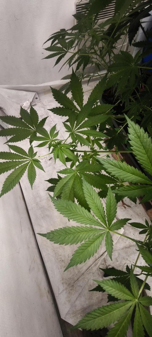 Problèmes mineurs : Une plante "écrasée" montre des feuilles inférieures pâles (manque relatif de lumière), mais pas de nécrose. Rotation augmentée. Pas d'alertes Trollmaster.