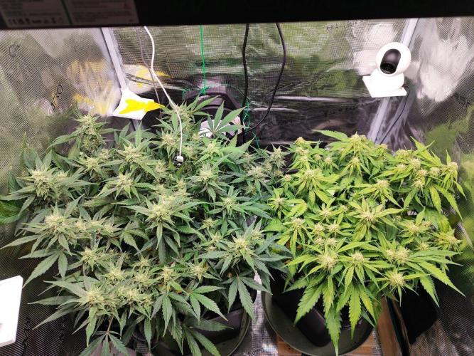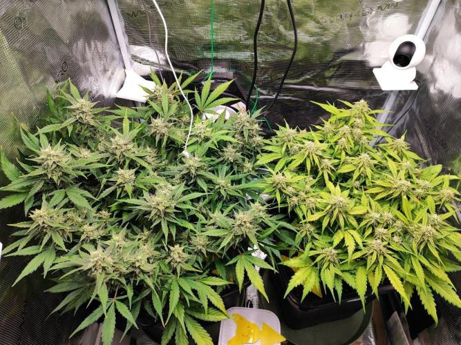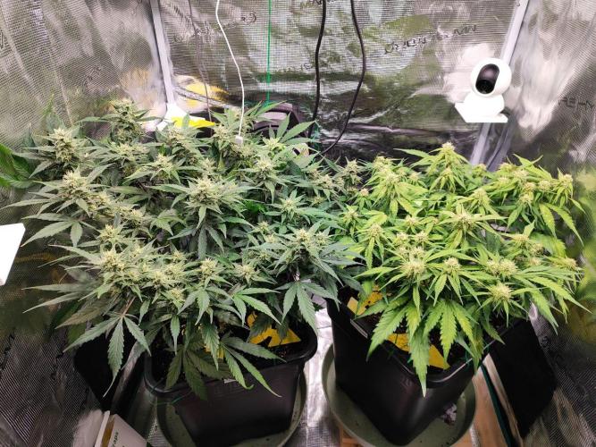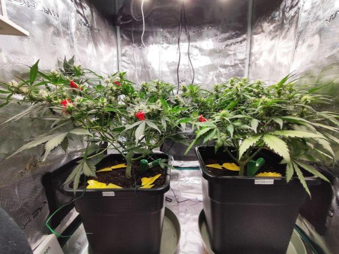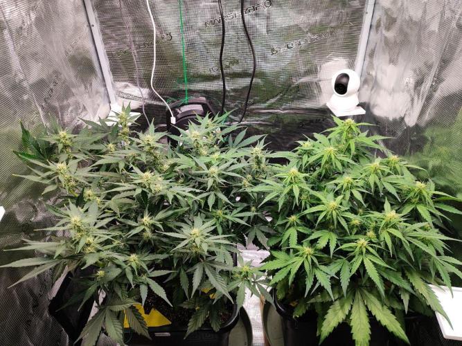 Day 33: Both plants started flowering and show a few white pistils. I wish the could have spent another week in veg, but it is what it is. Let's see how much they're gonna stretch over the next days.