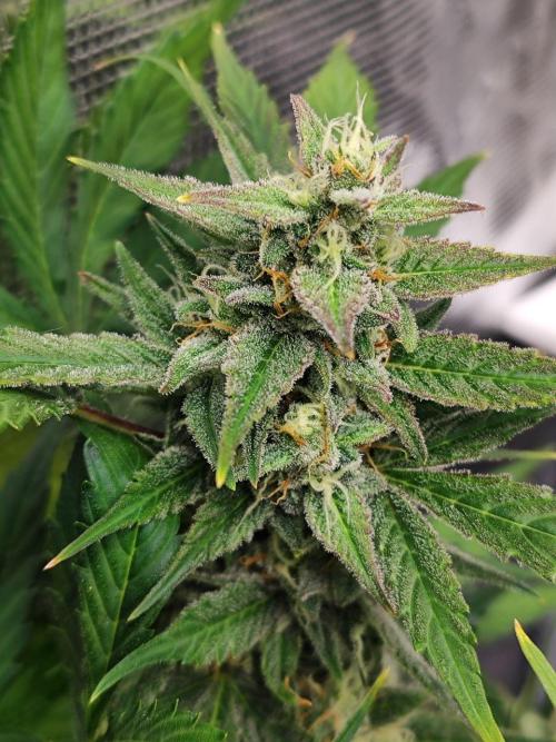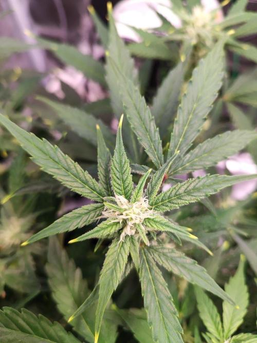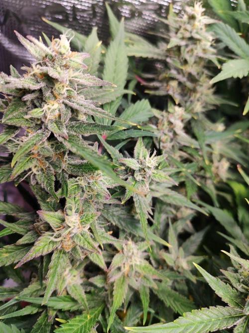 Isserley Day 49: Buds are stacking, Buzz shows first trichomes.
