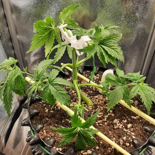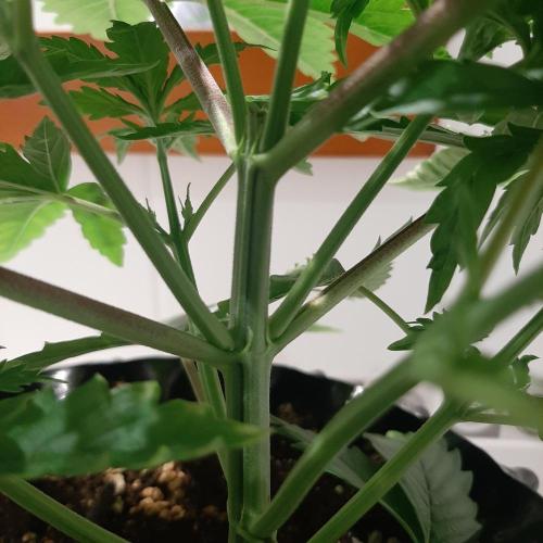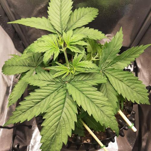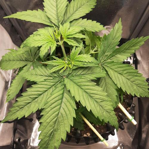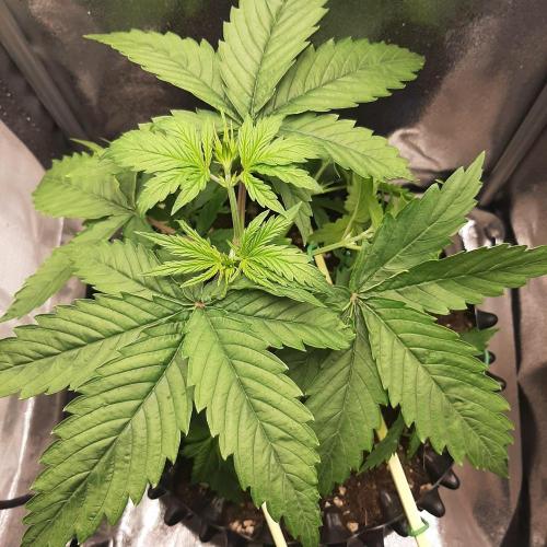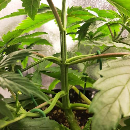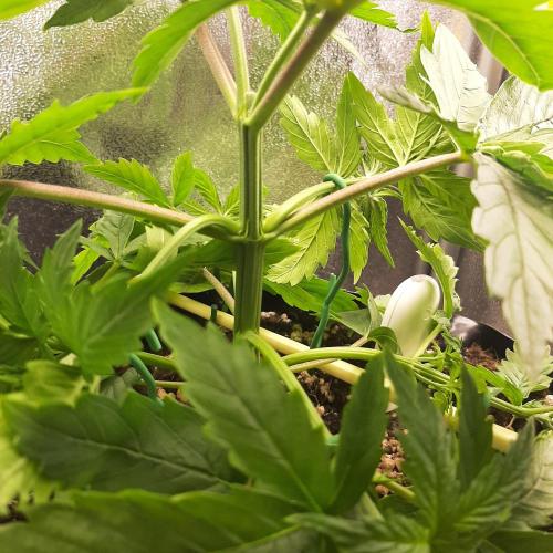 MisterZ Bonjour les amis. Mauvaise nouvelle, la base de l'apex fait une petite boucle. Du coup, la plante s'est effondrée mais le développement est rapide. Je ne pense pas finir la floraison en extérieur parce que je redoute qu'elle ne tienne pas droite. Je vais garder cette plante en intérieur et lui faire de la lst comme pour une auto en la penchant du côté où elle s'est déjà incliné. Sinon pas d'insectes, bonne couleurs et feuilles droites, ça va plutôt bien malgré ce problème orthopédique. 😄. M.