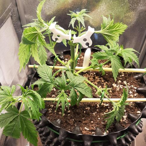 MisterZ Bonjour les amis. Encore une bonne semaine, le développement est impressionnant, le lendemain du premier topping le développement reprenait, et un second topping 4 jours plus tard. 😀 j'ai aussi posé quelques bigoudis à cette demoiselle. Mon espace étant limité je pense la passer en floraison bientôt. Et encore merci à mon restaurant chinois préféré pour les baguettes chinoises. C'est compliqué de fixer des liens sur ce type de pot. M.