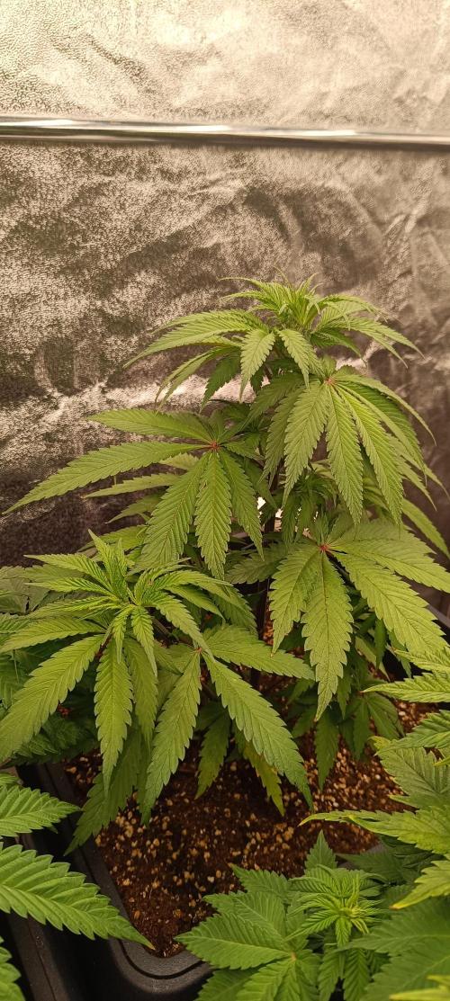AlbStoned Die Pflanzen wachsen sehr schnell, und sehr groß. Die Durban Poison haut hierbei Riesen Blätter raus, und wächst wie ein Urwald. Die Mango Cream x Cinderella Pflanze wächst sehr gut, ist dennoch luftiger und zierlicher als die andere Pflanze. Bei dieser Pflanze bilden sich prächtige Seitentriebe mit Blättern aus. Die Stengel sind rot ,und richtig schön anzusehen.