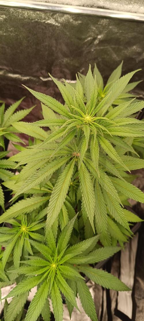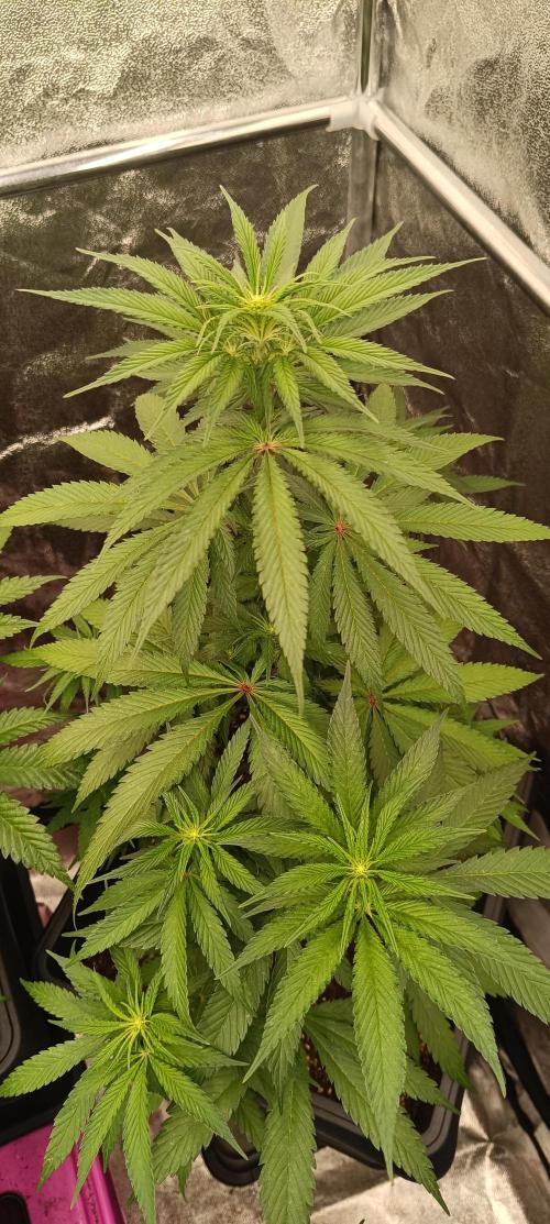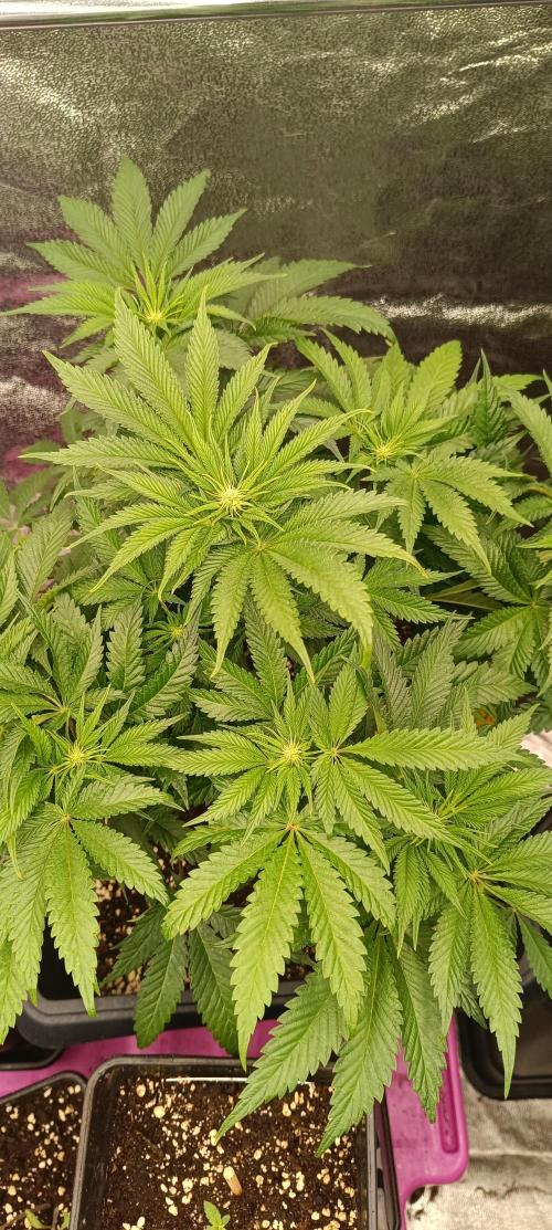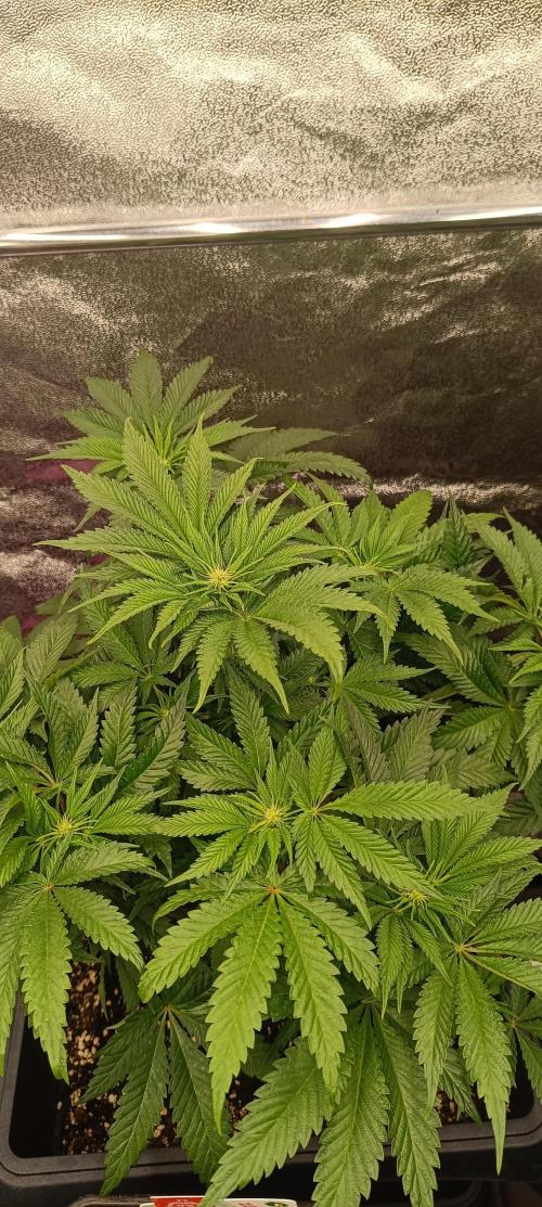 AlbStoned Es bilden sich die ersten Blütenansätze aus. Die Pflanzen haben einen hervorragenden Wuchs. Sie wachsen kontinuierlich, und haben keine nennenswerten Mangelerscheinungen. Bis hier hin bin ich mehr als zufrieden.