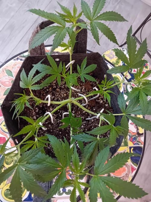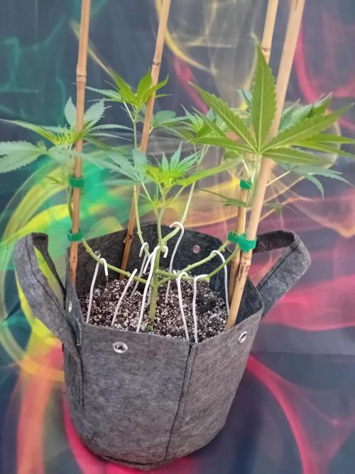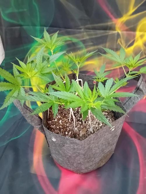 5th week here after topping now gave shape to the plant with some LST this plant really grow fast.Now waiting to start flowering.