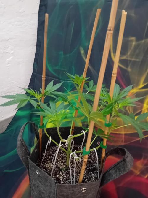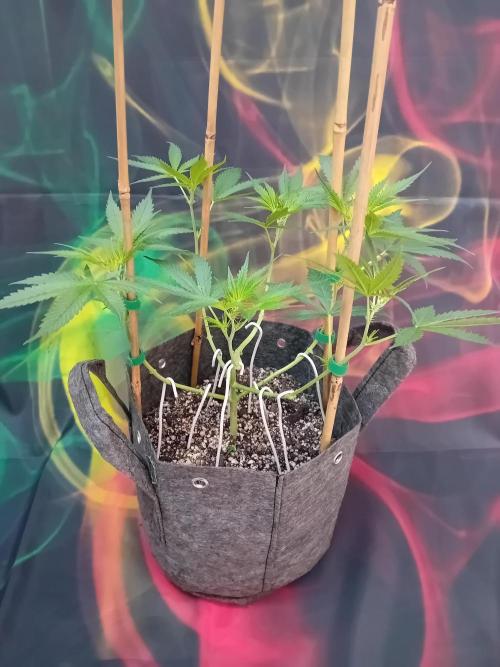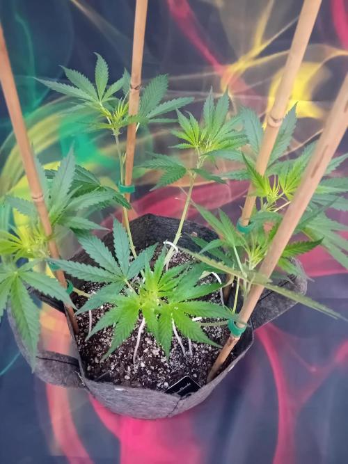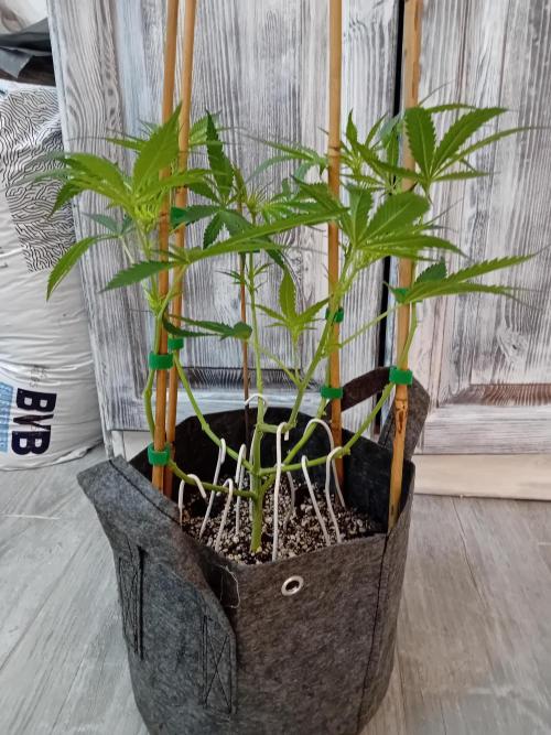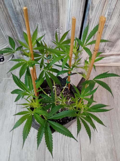 MaltaHerbman 6th week Pre flower had start long time not grow auto flowers but this plant grow every single day.Have add some sticks for later to hold buds