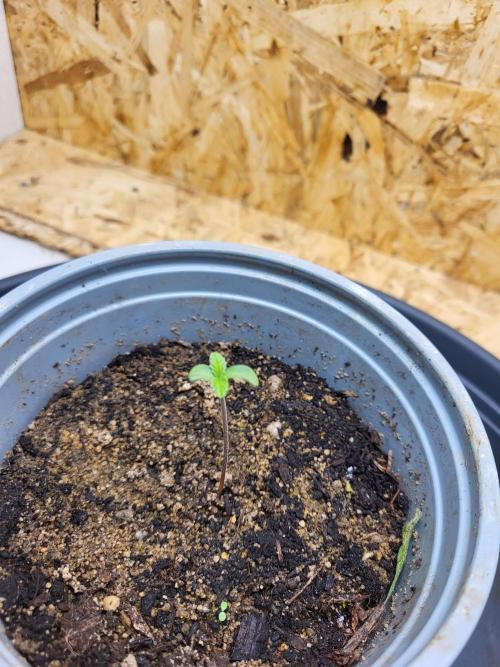 Oeson 1. Versuch einer Mexican Sativa in meiner selbst gebastelten Growbox 57x57x190. Anzuchterde: Maulwurferde aus dem Garten.
