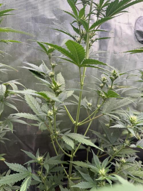 La mayoría de las niñas ya tienen cogollos pequeños los cuales esperamos que crezcan sanos y fuertes en esta semanas que faltan, con respecto a los nutrientes hemos agregado otros en esta etapa y hemos quitado algunos otros… se las ven bien, aunque muestren alguna marca de exceso en las hojas ya está cn el nivel justo y van mostrando mejoría día a día, más adelante más novedades…