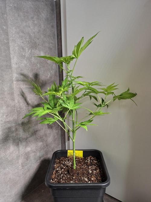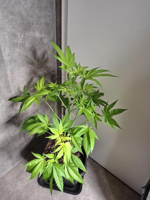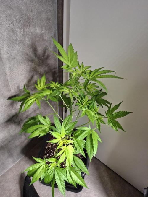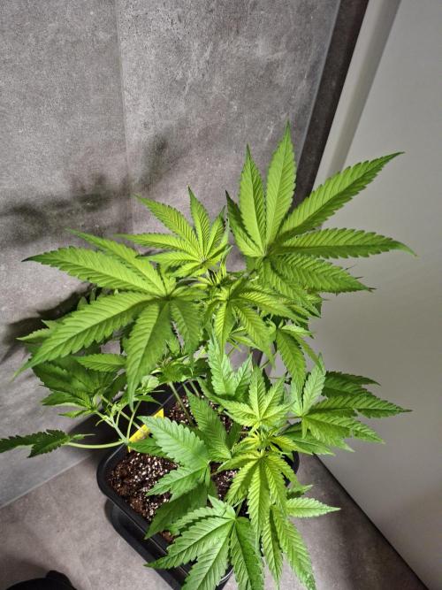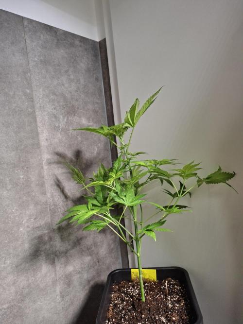 LandraceLarry this one is having me worried. It etiolated a bit due to the lights being too far and I gave it 500ml of water beginning of this week which seems to have been too much. Plant looks really unhealthy, might need to leave this in veg longer.