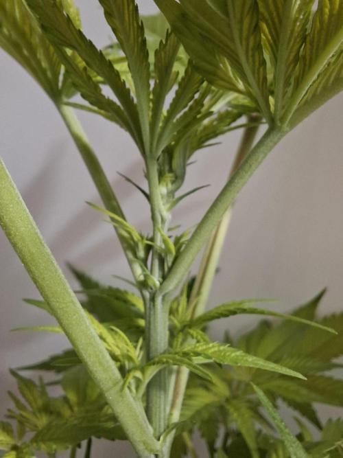 LandraceLarry okay this one just had a crazy push and almost grew 20 cm in one week! crazy! I don't think the camera is catching it but the leaves are slowly turning darker to a healthier green again. I will give this one more week veg at least. wondering whether I should top this one and continue with only 4 colas.... the think fast was great but it is taking way too much space