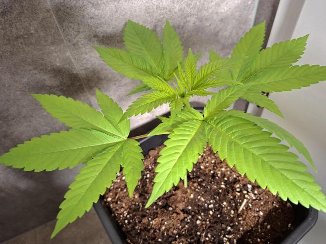 LandraceLarry this one is having me worried. It etiolated a bit due to the lights being too far and I gave it 500ml of water beginning of this week which seems to have been too much. Plant looks really unhealthy, might need to leave this in veg longer.