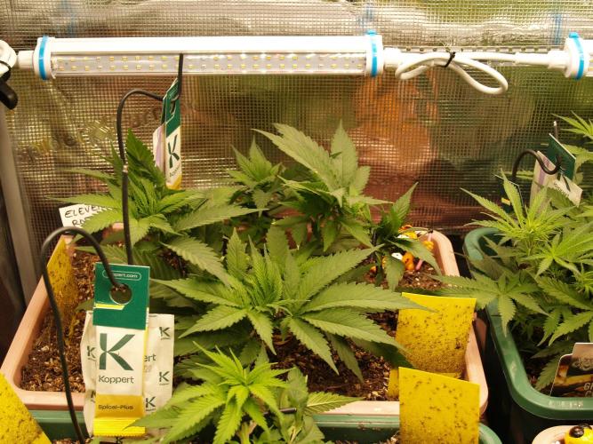 -Tag 54 Heute haben wir mit effektiven Mikroorganismen, mit Nematoden und mit Plagron Power Buds gegossen