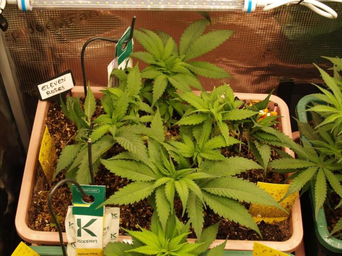 All_our_small_plants Wir haben einige Klone einer Eleven Roses gemacht, zwei von ihnen haben am ende doch überlebt und wir werden mit ihnen weiter machen.
