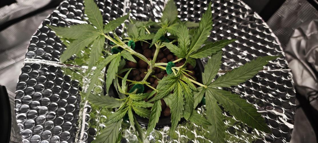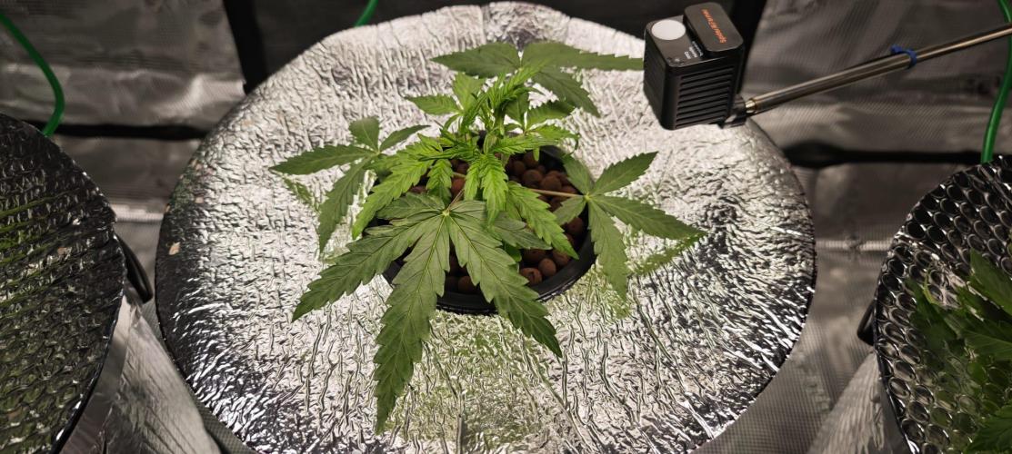 One seedling was stressed when the air pump stopped, showing drooping and yellowing leaves. Oxygenation was quickly restored and Cannazym was added to help the roots recover. The other two seedlings are thriving, building a solid canopy for the next stage.