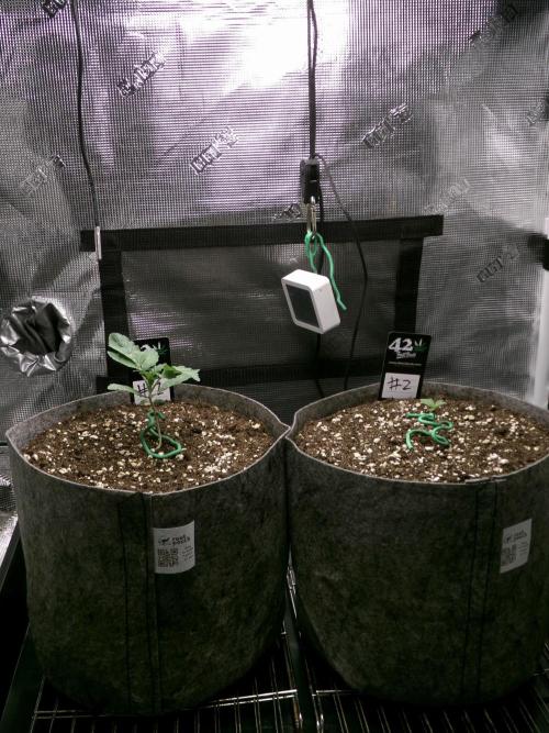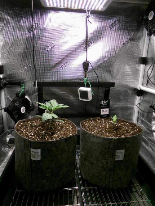Hashy ******************************************** Growdiaries Grow 24 ******************************************** Introduction. I decided to have a small break from growing this summer due to the area I grow in is almost impossible to control the environment during heat waves. I think it was a wise decision as the lung room has been around the 30c mark throughout most of the summer. I have bought a replacement camera for my time-lapse videos as the other died. This grow will consist of 2 photoperiod strains. Fastbuds Biscotti Gelato and Art Genetix Biaco Gelato. Edit, the Biaco Gelatos didn't germinate so I replaced it with Pyramid seeds Gelato. This diary is focusing on #1 Biscotti Gelato #2 Pyramid seed Gelato. Nutrients. Ecothrive Neutralise Shogun Katana roots Plagron Terra grow (3-1-2) Plagron Terra Bloom (2-2-4) Plagron green sensation (0-9-10) Plagron power buds (0-0-0) Equipment on Smart plugs. 1. Light= Viparspectra Xs2000 2. Feed= water pump. 3. Extractor= Ac infinity 4. Oscillating fans= 2 on ext. 5. Cameras= 2 on ext. 6. Humidifier= ram 5L 7. Dehumidifier= 2L 8. Radiator= 1KW ******************************************** Germination ******************************************** Light cycle=18/6 Light Power=68w 28% Extractor controller settings (during lights on). High temp= 26c High Rh= 70% Speed max=9 Speed min=1 Extractor controller settings (during lights off). High temp= 24c High Rh= 68% Speed max=9 Speed min=1 Smart controller settings (during lights on). Lights on=5.00am Camera on=5.05am Smart controller settings (during lights off). Lights off=11.00pm Camera off=10.55pm VPD aim=0.4-0.8 DLI aim=14-20 EC aim=0.2-0.8 PH aim=6.0-6.8 💧💧💧💧💧💧💧💧💧💧💧💧💧💧💧💧 Method= manually Feed=Seedling Nutes Neutralise=0.1ml/L Roots=5ml/L Easy Ph down=0ml/L (1ml=24 drops, 1 drop=0.04ml) Easy Ph Up=0ml/L (1ml=24 drops, each drop is 0.04ml) Ec=0.3 PH=6.3/6.4 💧💧💧💧💧💧💧💧💧💧💧💧💧💧💧💧 ******************************************** ******************************************** 📅31/8/25 Sun 📋 11.30am no sign of any of the Art Genetix seeds moving, so started soaking a Pyramid seeds Gelato as a backup. 8.15pm seed sank so placed it in paper towels. (Germination day 0) 📅1/9/25 Mon 📋No sign from any of the Art Genetix seeds yet. The paradise seed looks like it may be cracking open. (Germination day 1) 📅2/9/25 Tue 📋One Art seed looks like its about to crack open. Pyramid seeds Gelatos tap root is breaking through so put that one into the soil. (Germination Day 2) 📅3/9/25 Wed 📋 💧0.15L Ec=0.3 PH=6.3 Pyramid seeds Gelato looks like movement. (Germination Day 3) 2nd seed Art Genetix tap root might be about to emerge. 📅4/9/25 Thur 📋💧0.15L Ec=0.3 PH=6.3 Looks like Gelato tap root has broken the surface. (Germination day 4) 📅5/9/25 Fri 📋 📅6/9/25 Sat 📋💧0.5L Ec=0.3 PH=6.3 This gelato has a couple of bends in the tap root and shell is still attached, but im going to call this day 0. I'm hoping she becomes a strong plant because at the moment it does look a little fragile. ******************************************** Weekly roundup. 📋 So 1 day into the grow and the 2 Art Gentix seeds hadn't germinated. Even if they do germinate its to late for them as that spot has now been taken up by this strain of Gelato by Pyramid seeds. The Gelato took 6 days to germinate The backup seed has made it, she's going to be a week behind the other strain so I may veg this grow a little longer then planned. No sign of the original Art genetix seeds germinating 14 days from starting. Take it easy. Back soon. ********************************************
