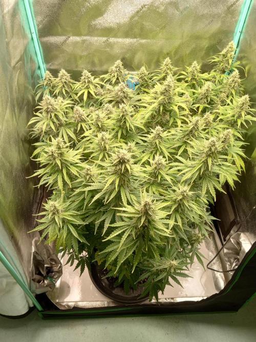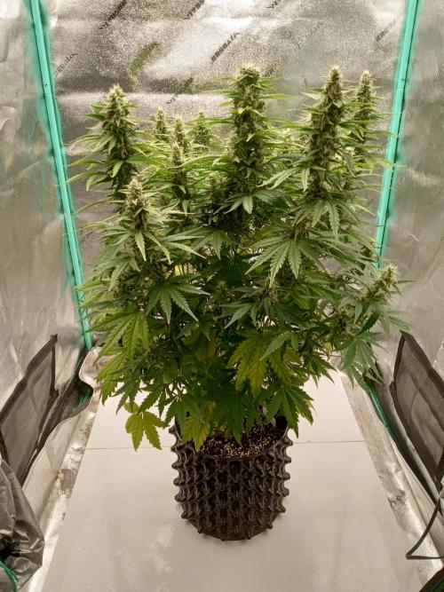 Buddo Tooth Decay is starting to bud, drinking 3 liters every couple of days. The ravenberry/fantasmo express, crosses in the tent shot, are better looking plants but the finish line is a few weeks away. The Chemdogging photo is for Kohlrabi. 20 inches tall, but I kept her shorter becasue of the 5 foot tall tent.