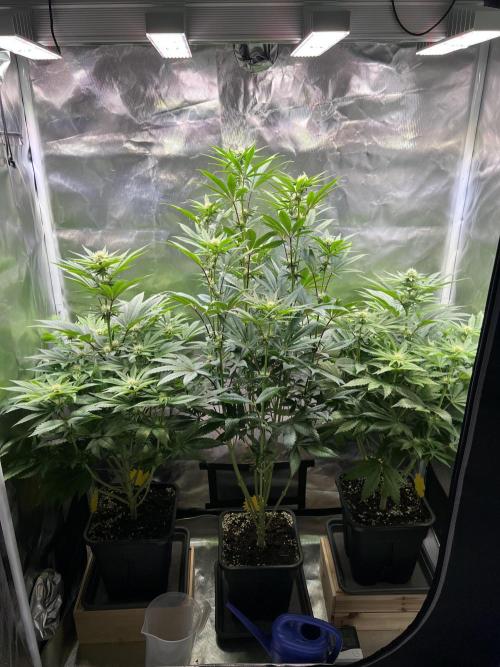 Lampenleistung hab ich direkt auf 80% geknallt was um die 212w sind. Abstand halte ich zur großen Pflanze mit 40cm, die beiden anderen liegen bei um die 55cm. Würde mir wünschen das sie sich noch etwas strecken