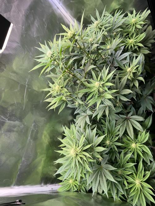 KritischeMasse Ich habe schon auf Blüte umgestellt letzte Woche. Aktuell sieht das danach aus das die mittlere Pflanze richtig schön in die Höhe wächst, die beiden anderen bleiben selbst ohne toppen sehr niedrig und buschig.