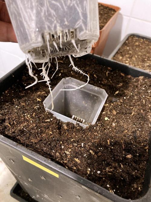 Segunda semana de vida, la plántula crece y las pequeñas raíces se expanden por la maceta, una semana más y la paso a la maceta final.