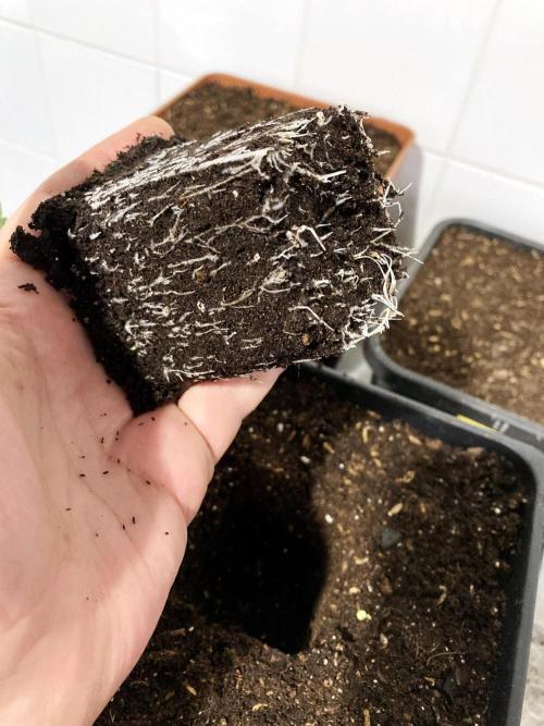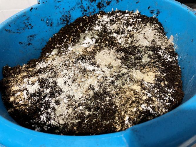 Esta vez he hecho una mezcla de sustrato compuesta por un sustrato base basado en turbas y con baja carga nutritiva (5 partes de 12), a esta base le he añadido una parte de bocashi maduro casero, otra parte de humus de lombriz, he añadido también una parte de bocashi de algas (muy especial), otra de cascarilla de arroz con la que sustituyo a la perlita, y dos partes de fibra de coco inoculada previamente con Microorganismos de Montañay mezclada con Biochar y carbón de cascarilla de arroz. He añadido también una parte de Zeolita y Vermiculita, y finalmente polvo de rocas a razón de 1 gramo por litro de tierra: Montmorillonita, Caolín, Piedra Pómez, Arcilla verde y marrón, Leonardita, Roca fosfórica, Tierra de diatomeas, Dolomita y Azomite.