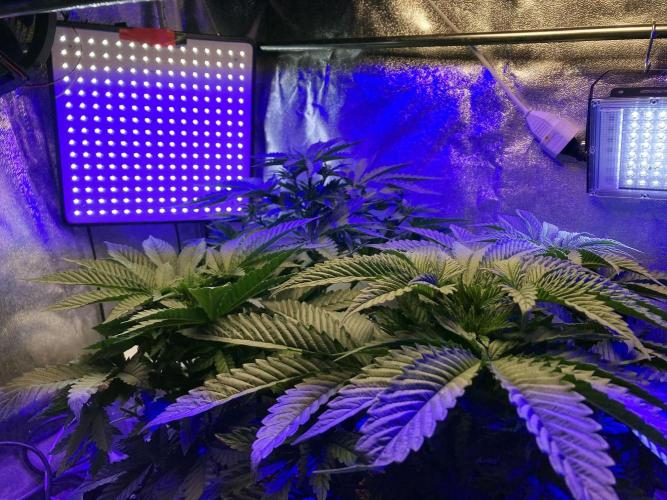 Esta semana debido al aumento del área de cultivo he añadido un panel lateral de 7700K, mi jardín desobediente está en plena primavera, en medio del otoño, con mucha luz blanca y azul.