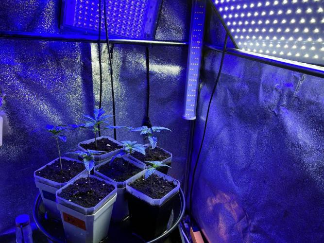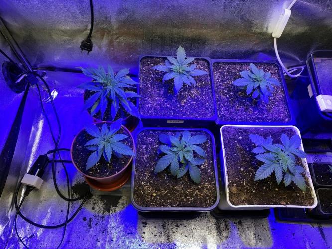 Al aumentar el área de cultivo en mi jardín rebelde, he cambiado las luces por otras más potentes, manteniendo la gran presencia de luces azules (450nm) que me permiten una gran compactación, mezcladas con una lámpara de cultivo general para completar el espectro; he pasado de 70w a 250w y para compensar el aumento del gasto eléctrico he bajado el horario de luz de 24H a 21H... todo por la causa! 😋
