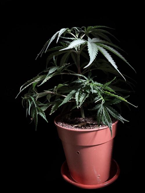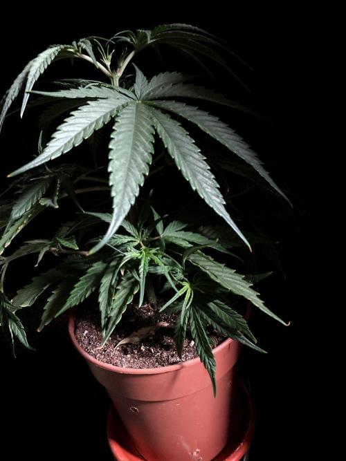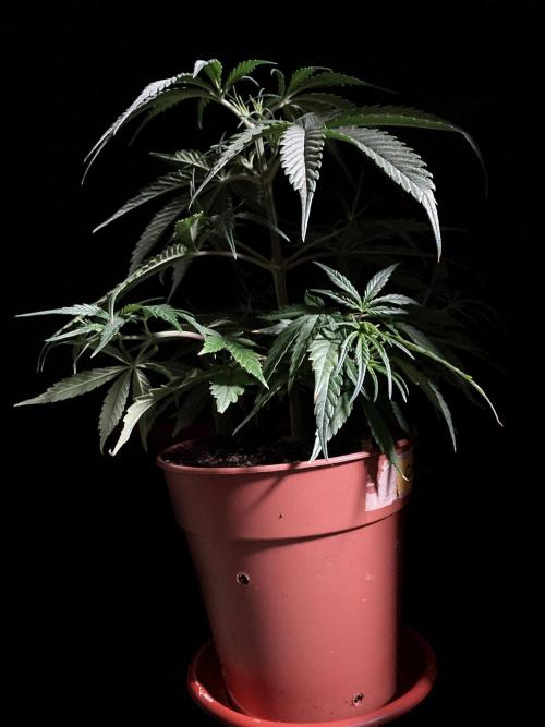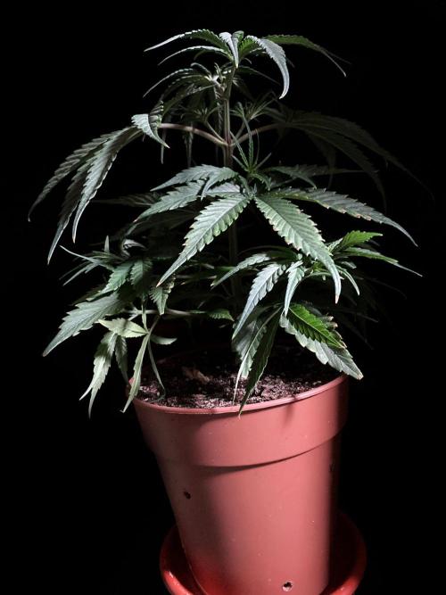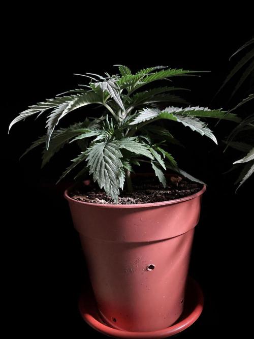 Ayer la trasplanté a una maceta intermedia de 1,5L porque creo que la semilla es regular y quiero a partir de la semana que viene, dando tiempo para que se establezca en la maceta, acelerar el sexado de la planta a ver si es macho o hembra, de ser macho será ejecutado al instante.