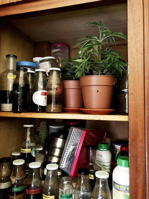 - Planta desconocida surgida de una semilla que encontré perdida en el suelo, rodeada de cables y polvo. Probablemente sea una de las semillas regulares que saqué la temporada anterior, ya que tuve un macho de una antigua sativa brasileña que copuló con todas las hembras de la temporada. https://growdiaries.com/diaries/257677-george-brazil-sativa-grow-journal-by-defharo