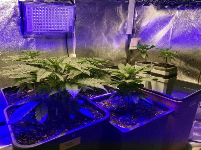 Al aumentar el área de cultivo en mi jardín rebelde, he cambiado las luces por otras más potentes, manteniendo la gran presencia de luces azules (450nm) que me permiten una gran compactación, mezcladas con una lámpara de cultivo general para completar el espectro; he pasado de 70w a 250w y para compensar el aumento del gasto eléctrico he bajado el horario de luz de 24H a 21H... todo por la causa! 😋