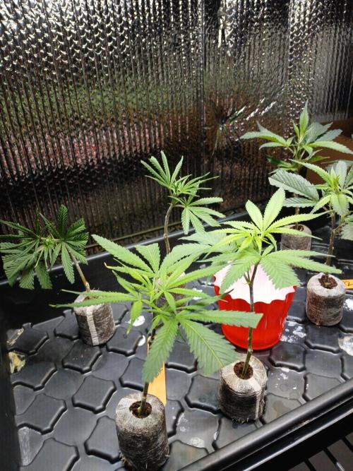 Details: Planted 6 Elev8 Nerds Rope S1 seeds and 1 Dirty Bird Genetics Tropical Rozay seed in Char Coir coco coins.
