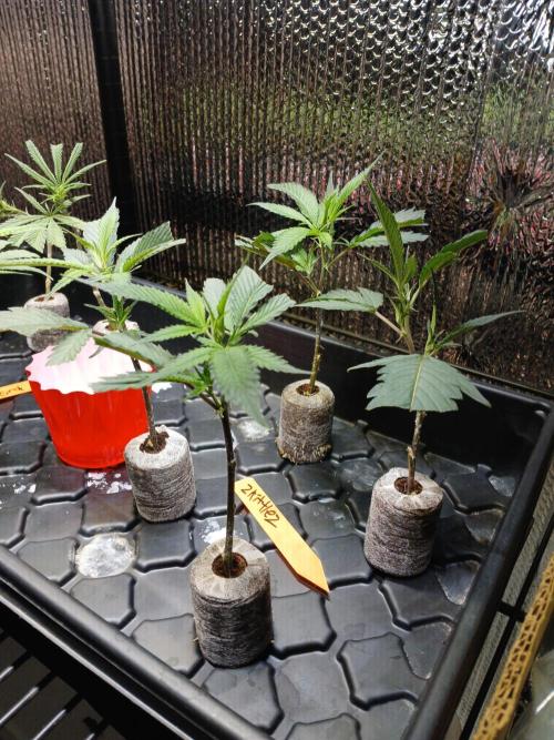 Details: Took clones from the OG Kush and Blue Zkittlez plants. Soaked Char Coir coco coins in an Extreme Gardening Azos solution, then dipped the clones in Clonex and placed them into the coco coins. Watered the OG Kush and Blue Zkittlez plants with 2,000 mL of Jack’s 3-2-1, pH adjusted to 6.2.