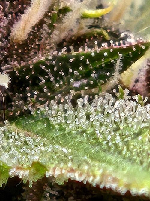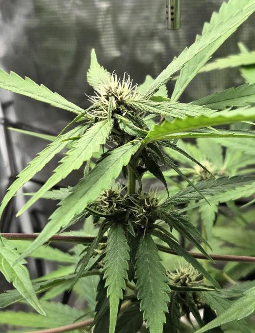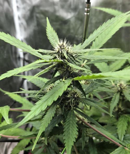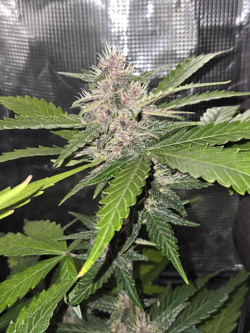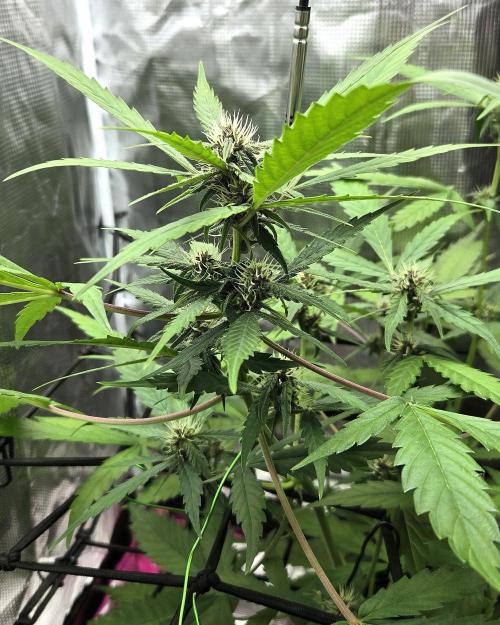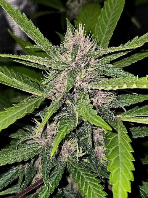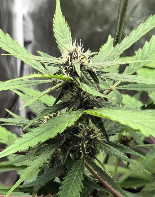 CeeGreen I'm a little unsure on the correct light intensity I should be trying for, but I'm roughly at 41 DLI for the first few days of the week. No noticeable leaf growth, other than sugar leaves, but the fan leaf stems have taken on a reddish purple color and the plant remains healthy looking otherwise. I have kept the temps a little lower this week, 73 to 74 F, during the day. At this temp the plant has no noticeable smell now, like it did with 76 F temp.