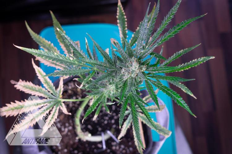 Antifame My baby is in full flower. Her training didn't seem to harm her and she got 2 main stems now. 😅
