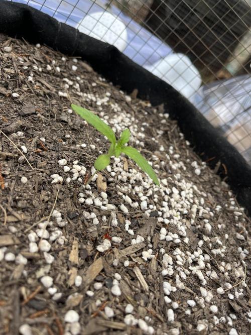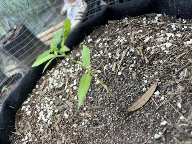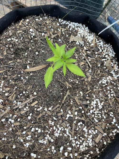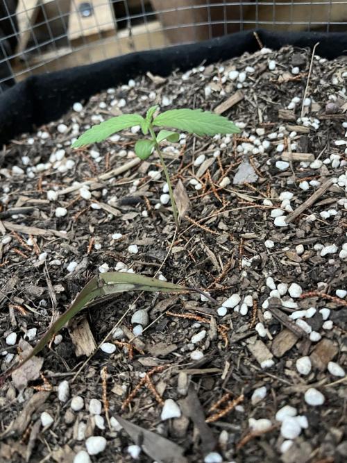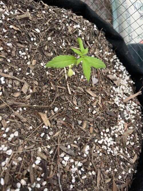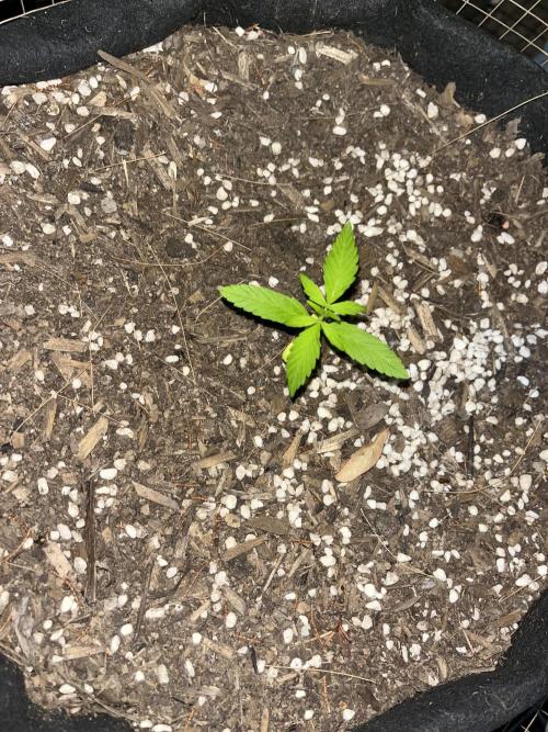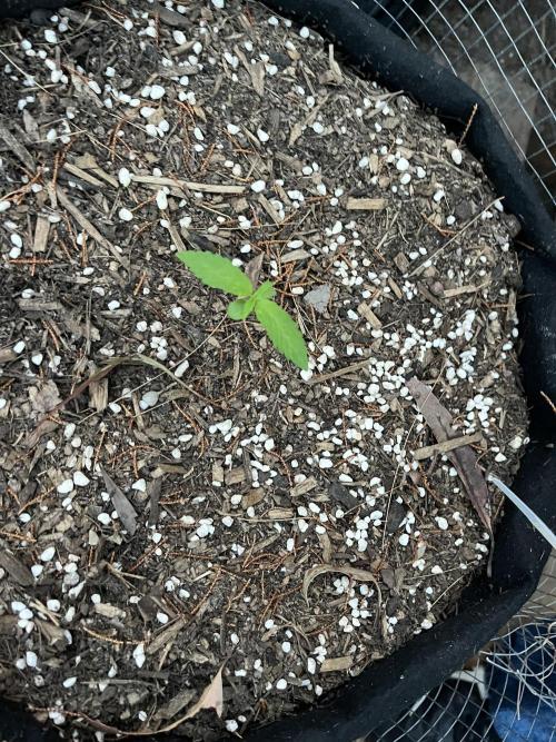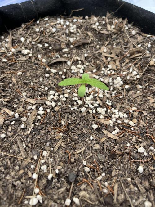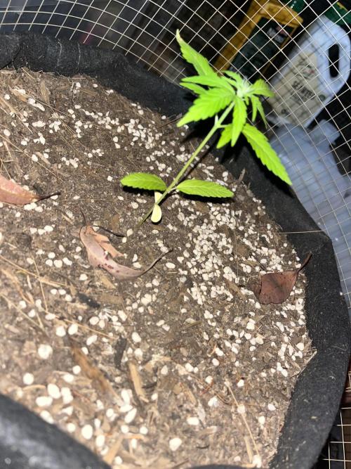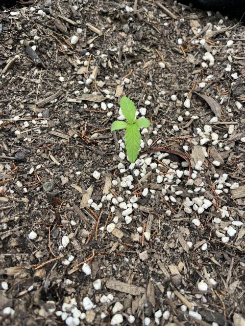 SydneySiders Both seeds sprouted this week, with healthy looking seed leaves, and the beginning of the marijuana leaves poking out from inside. Watered each plant twice with 1.6L of water