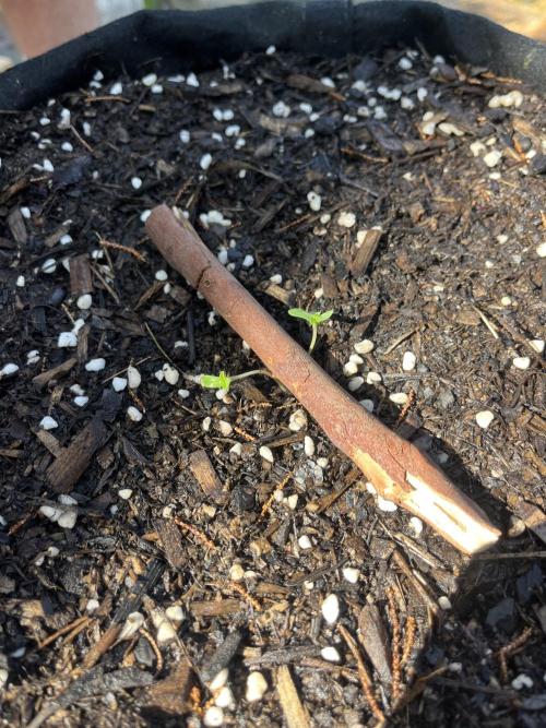 SydneySiders The twins are coming up nicely, we placed a small stick between them on day 4 to hopefully make them grow separate. then on day 5 we swapped it out for a slightly larger stick, we will keep doing this each checkup until they are growing far enough apart. Basically like starting LST from a very very young age!