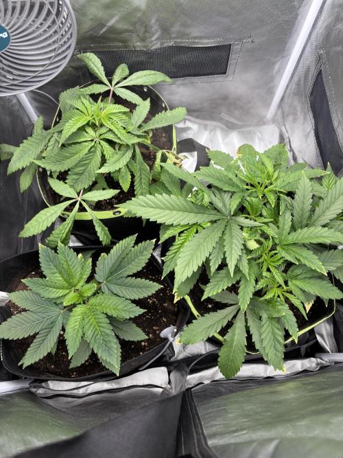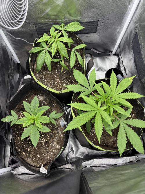 Kominest They coming slowly . Lower left one is some days younger then her sister back left . I start to use humidifier now. 75% and 18-20 DLI . Will start training and topping in the next days