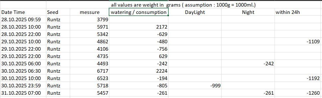 + watering : 2.5L bottle water EC 0.355 , PH 7.5 . Final EC 1.143 PH 5.98