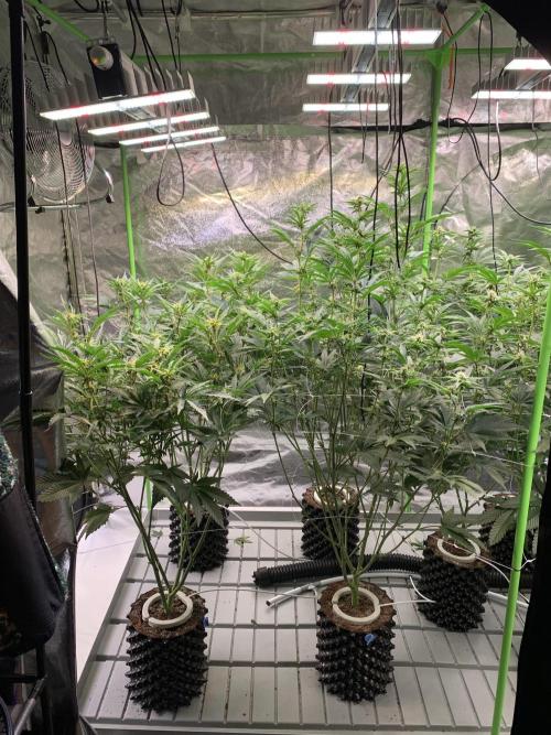The plants were then placed into the grow tent and watered to runoff using the irrigation system.
