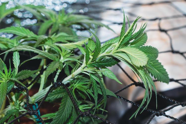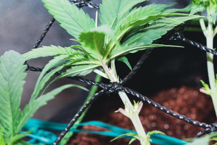 I have started with some LST to put the plant in a more favorable position to Scrog and break with the apical dominance. After some days was time for a big defoliation and the scrog net. I’ll keep training and spreading the plant during the next weeks.