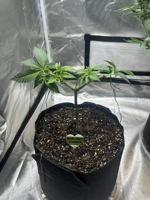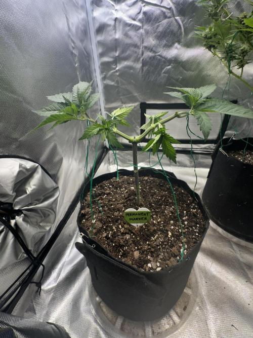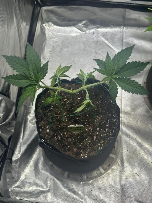 Puff_TM_Dragon Going to attempt mainlining. Removed everything below where I topped it. This will extend an already seemingly slow veg time longer than I’d like but hopefully it will be worth it in the end. Haven’t watered in what seems like forever. The bag is heavy and she’s been a light drinker so far.