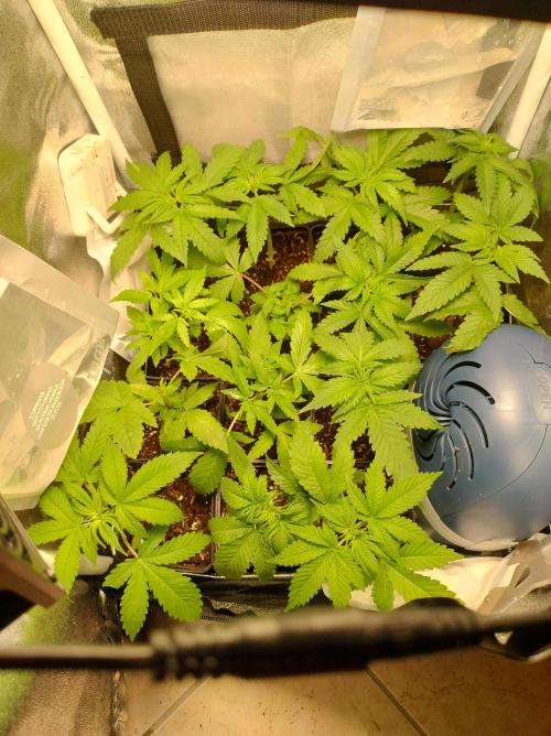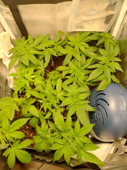 deepsheeba Ready to flower.this week they had suffer from a low VPD and show some sign of deficiency. What it looked like a mag deficiency that usually appear on lower leaves first it happened on the upper leaves. This would happen only if there's no transpiration. Bought an extractor a pair of fan. Autumn starts digging in just in time to lower temperature for flowering.