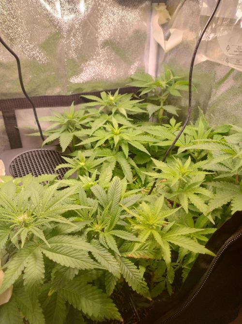 deepsheeba Ready to flower.this week they had suffer from a low VPD and show some sign of deficiency. What it looked like a mag deficiency that usually appear on lower leaves first it happened on the upper leaves. This would happen only if there's no transpiration. Bought an extractor a pair of fan. Autumn starts digging in just in time to lower temperature for flowering.