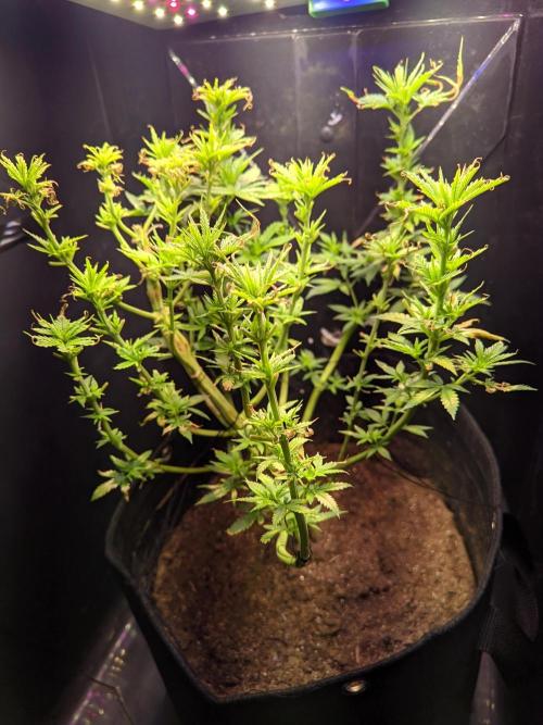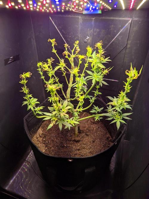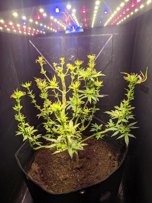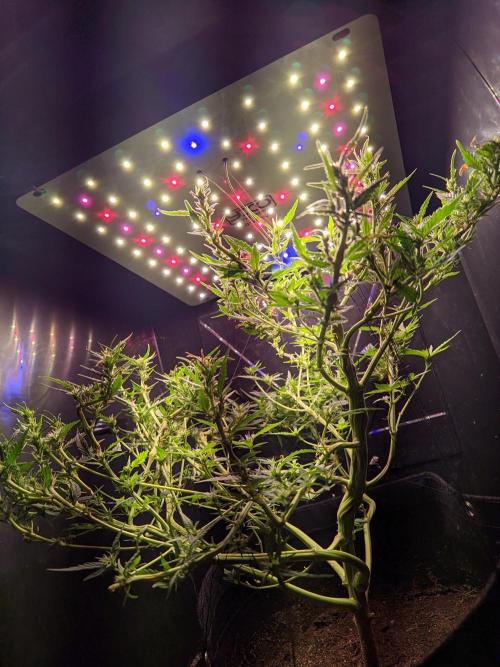 Mas como nem tudo é doce, infelizmente terei que desmontar o grow para realizar uma mudança, então ela passará dia ou semanas na escuridão total com o grow fechado 😭. Apesar disso, acredito que ela sobreviva, mesmo com sequelas, pois ela demonstrou ser bem resiliente quanto aos altos e baixos da vida. A próxima postagem será sobre a recuperação dela, e já iniciarei com período de luz 12/12, porém, não considerarei como floração de fato, mas sim fim do estágio vegetativo.