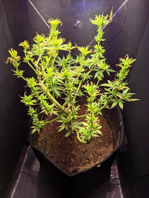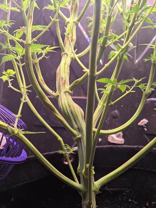 Decretto Essa semana foi difícil, quase não tive tempo para cuidar delas, mas ao menos conseguir fazer as amarras para deixar ela baixinha, pois meu grow possui apenas 50cm de altura disponível para o crescimento, então todas as minhas plantas devem ser treinadas, se não a coisa sai do controle.
