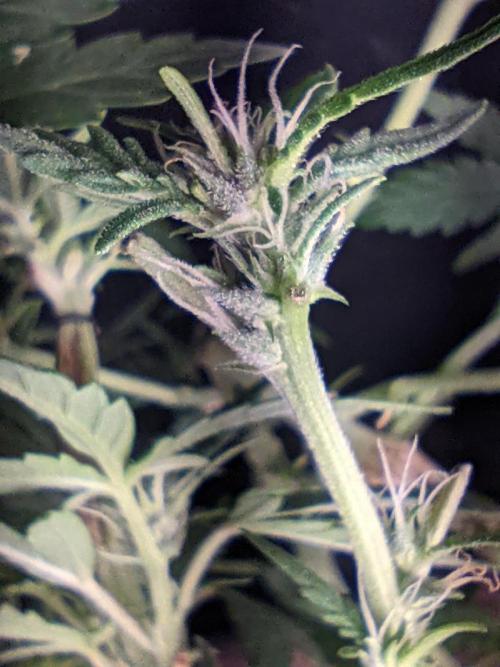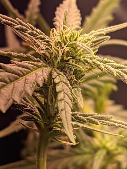 Decretto E o crescimento não para. A terceira semana desde o surgimento termina com a legendary og punch demonstrando um potencial de buds compactos e extremamente resinados. Já no final da terceira semana desde o surgimento dos pistilos eu observei que alguns pistilos ficaram laranja, enquanto outros crescem verticalmente, além de um brilho intenso de resina nos cálices mais antigos e folhas de açúcar.