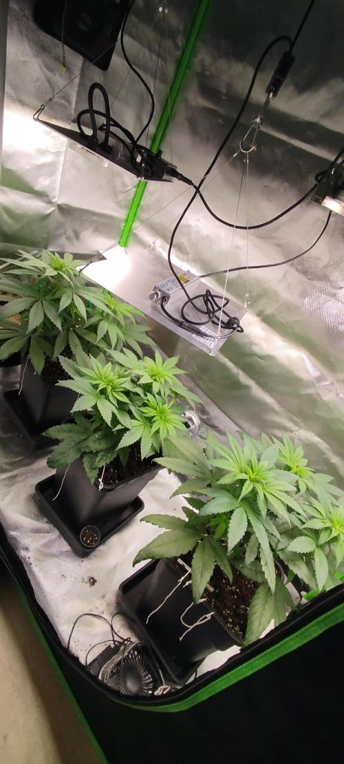 PostMaGrow In der 3 Woche sehen die Ladys immernoch gut aus. Natürlich bedenke ich das es ein bisschen dauert bis sie sich vom topping erholen. 1 Lady hat ein bisschen Wasserschaden an den Segelblatt ist aber nicht so schlimm entwickeln tut sie sich genauso gut wie die anderen. Update gibt es nächste Woche mit neuer growbox.